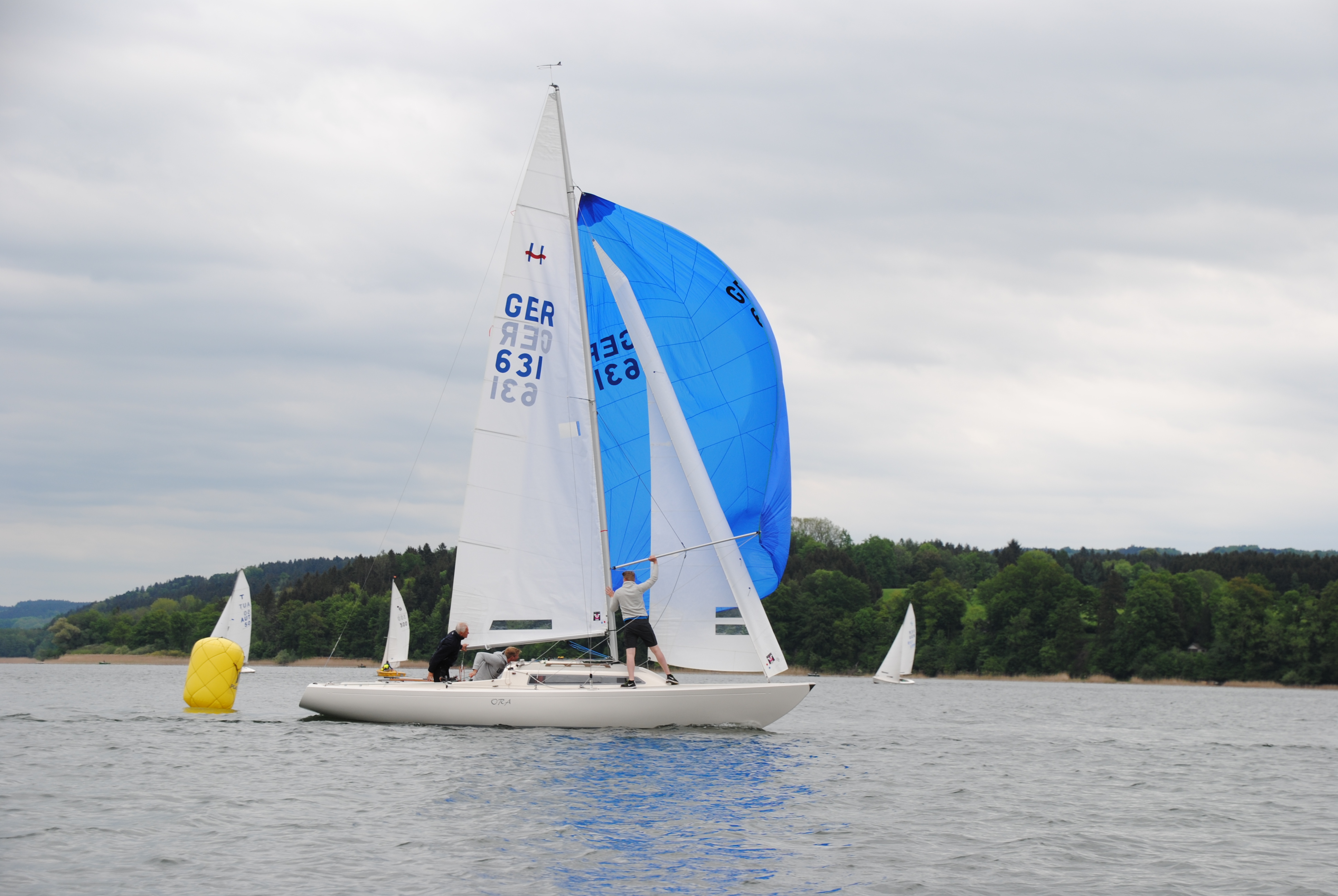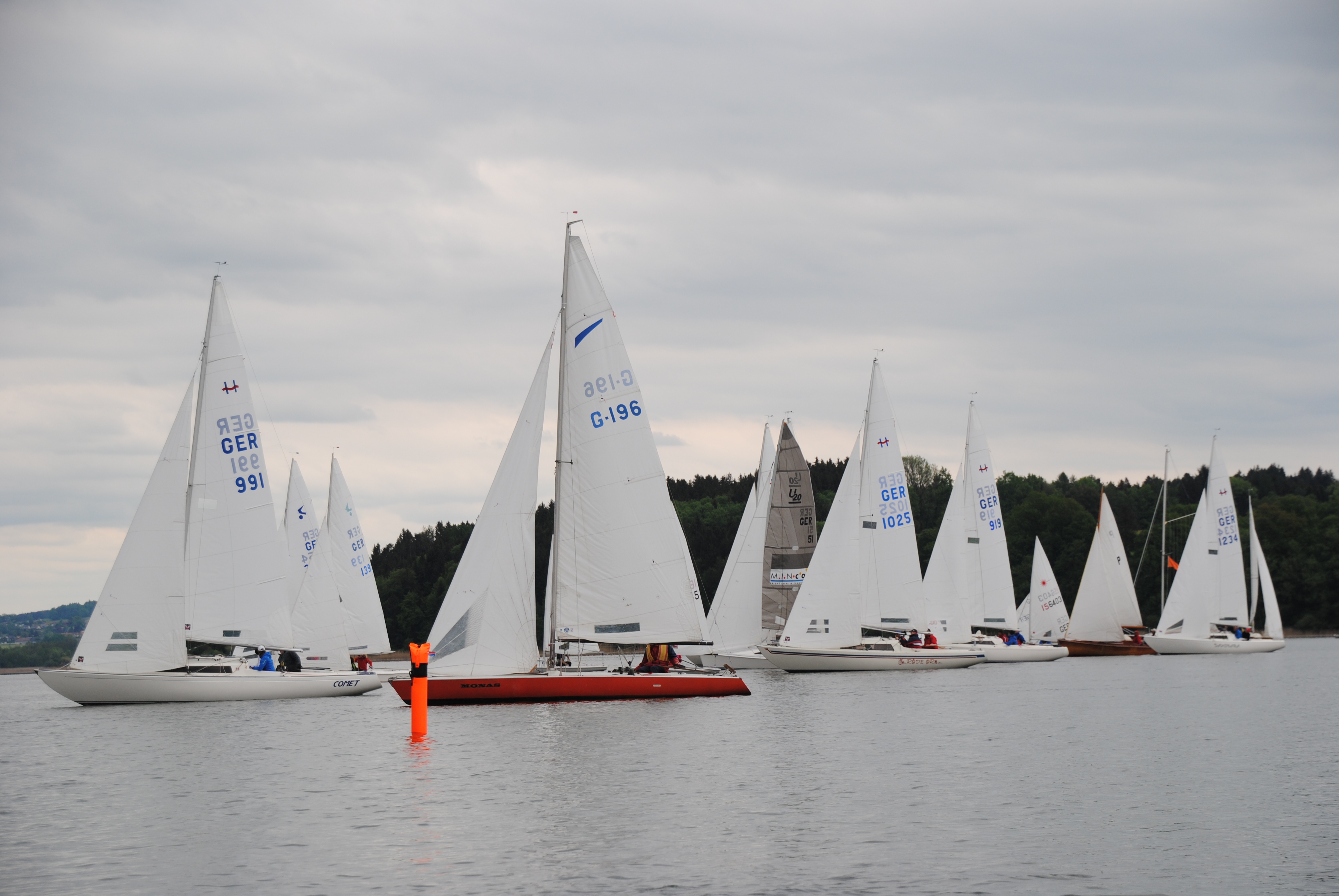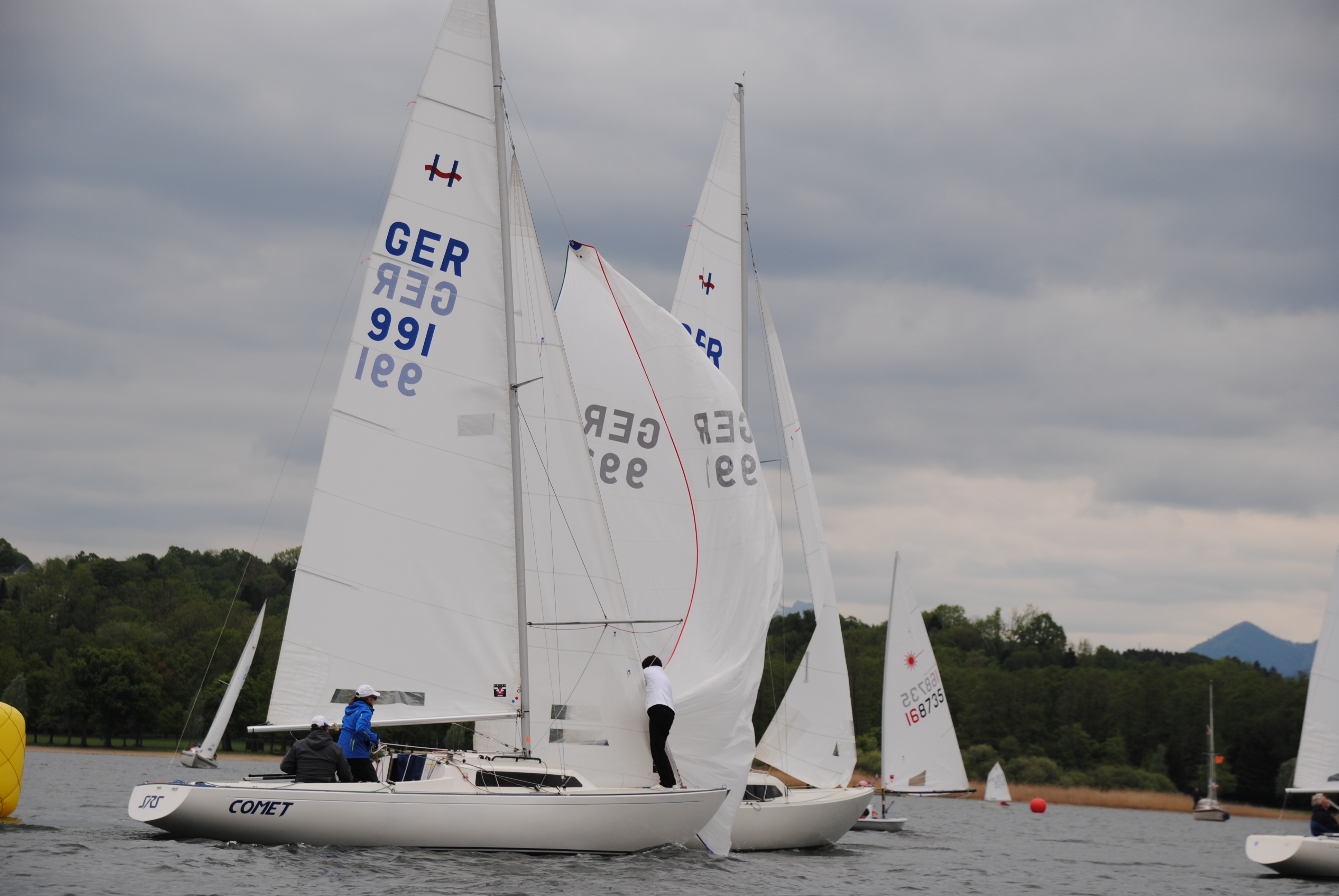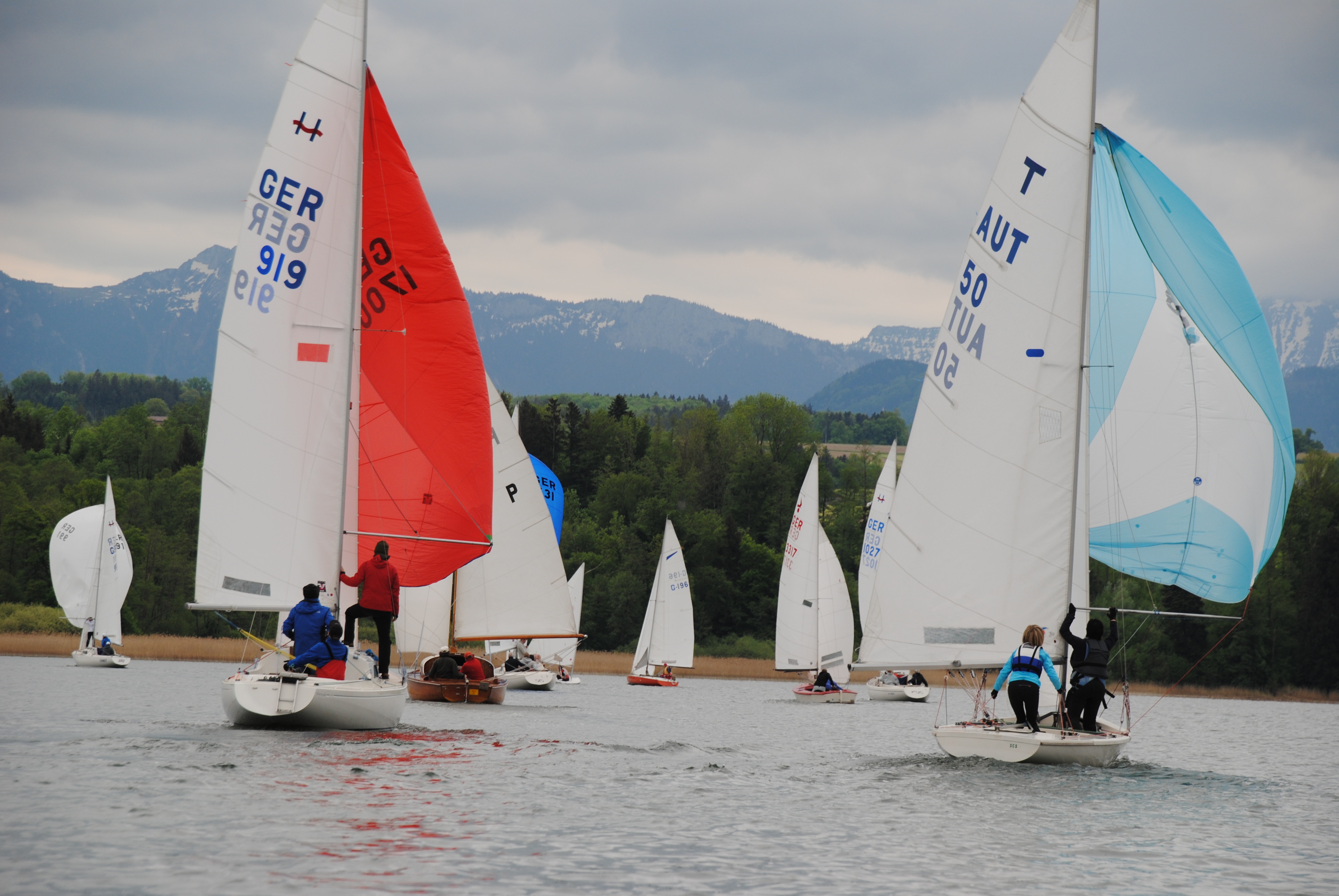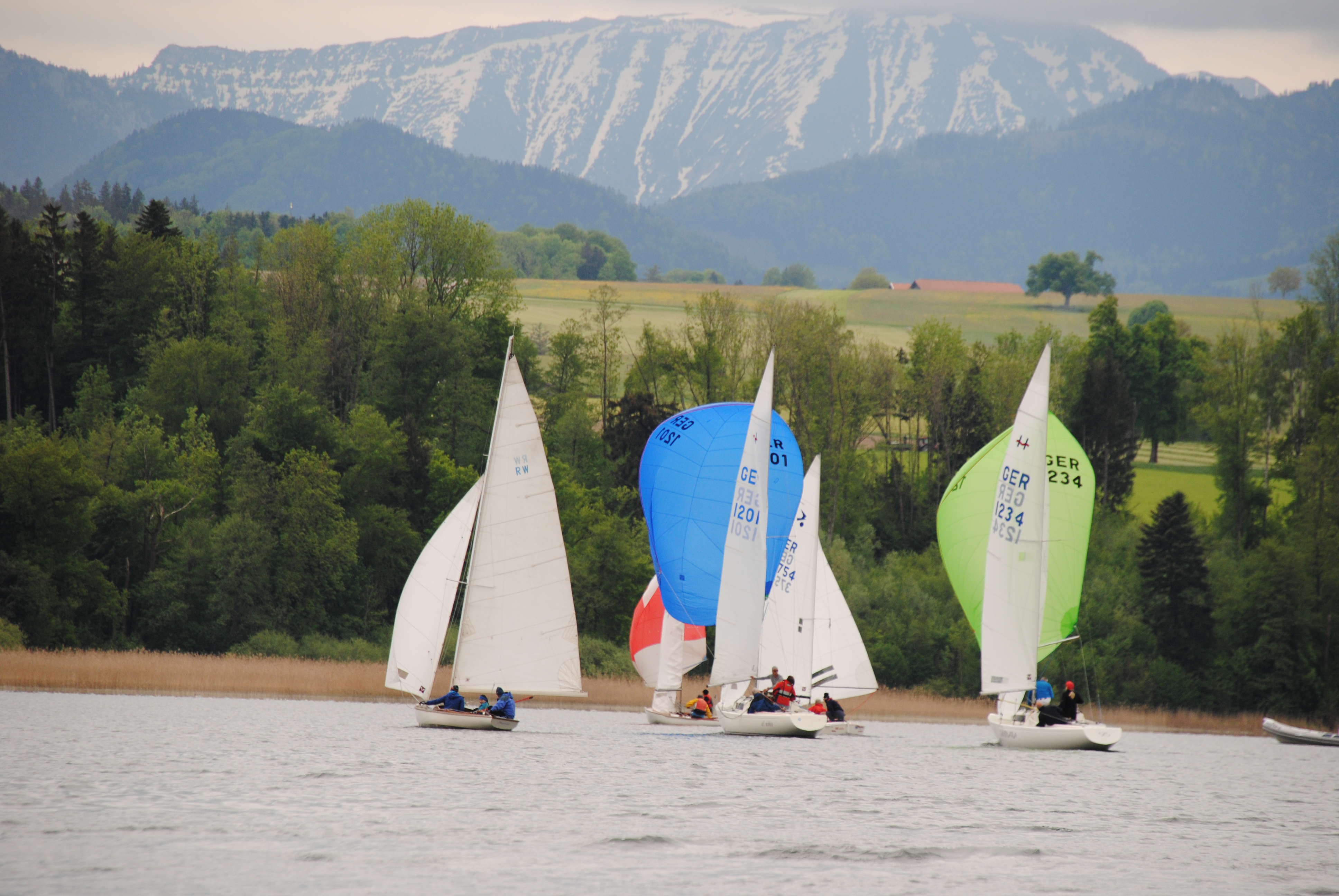 Knappe Abstände beim Ansegeln auf dem Simssee