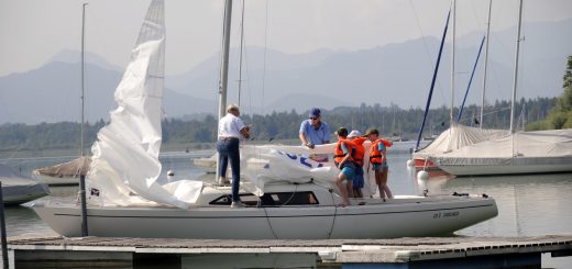 Von den ersten Segelmanövern für Anfänger bis zu Starttaktikübungen für Fortgeschrittene, stehen natürlich auch Segeltheorie und Knotenkunde auf dem Plan. Am Ende der Woche besteht wie immer die Möglichkeit, je nach Können und in Absprache mit den Trainern, die Prüfung zum „DSV Jüngstensegelschein“ abzulegen.