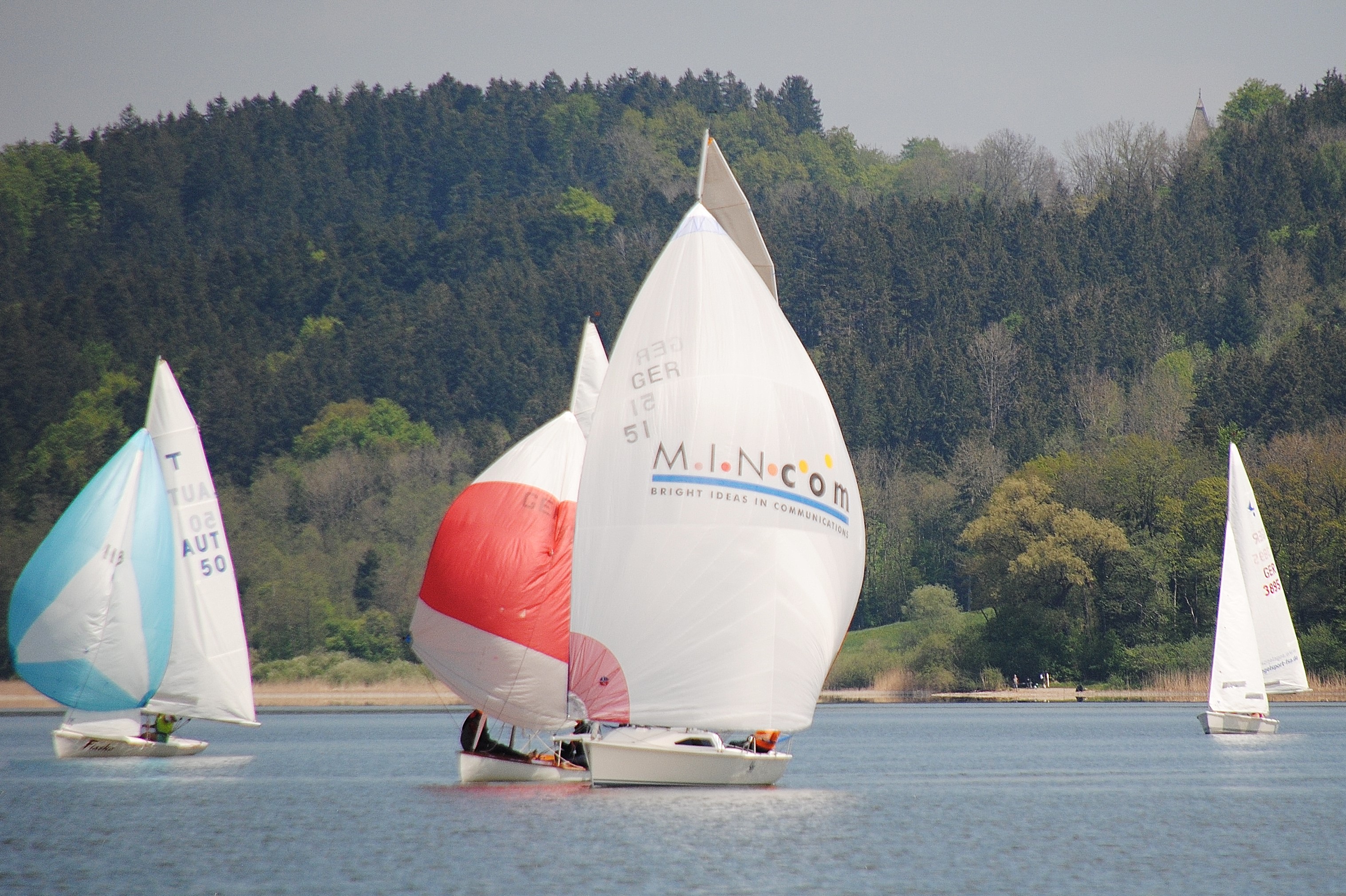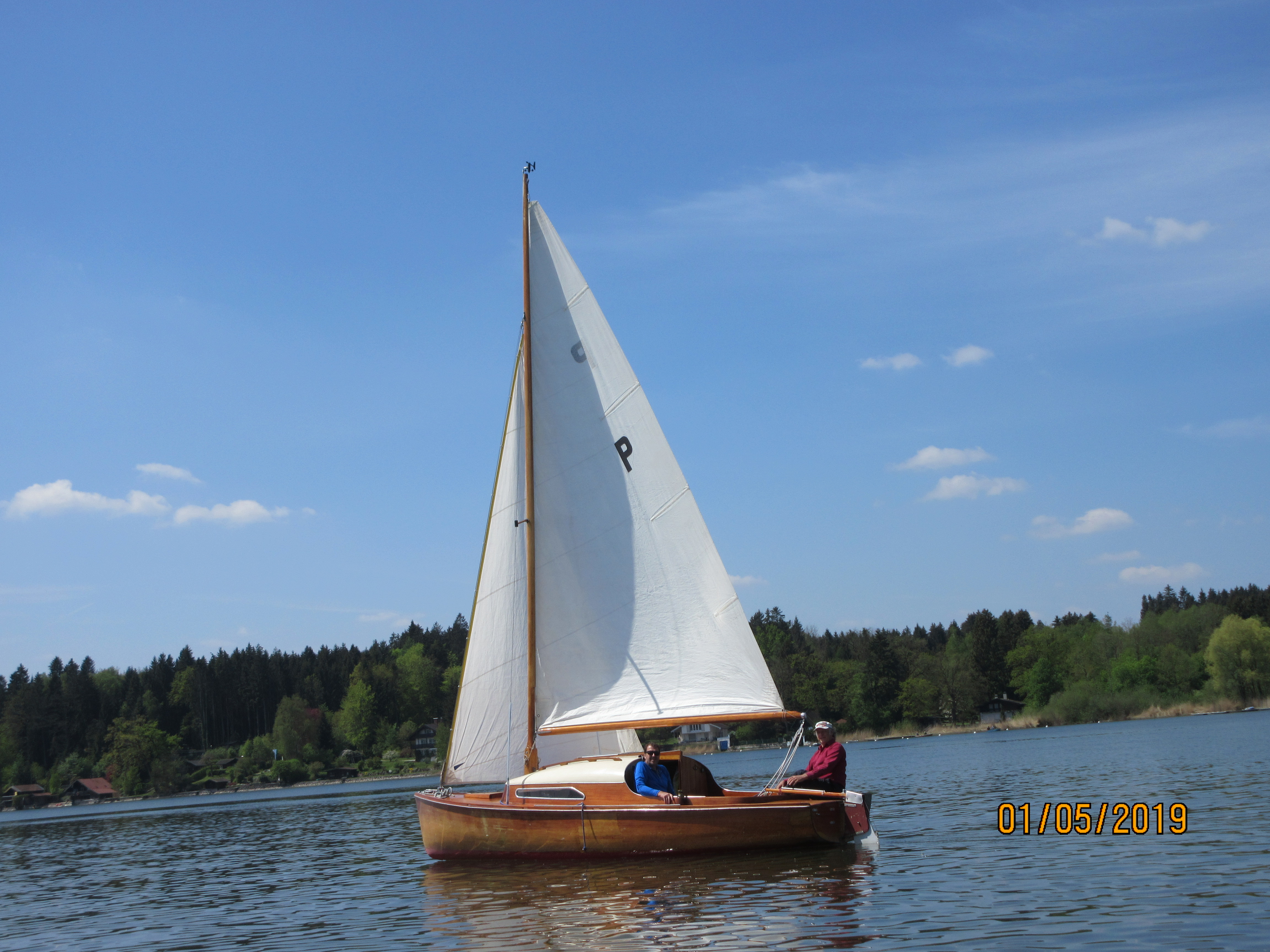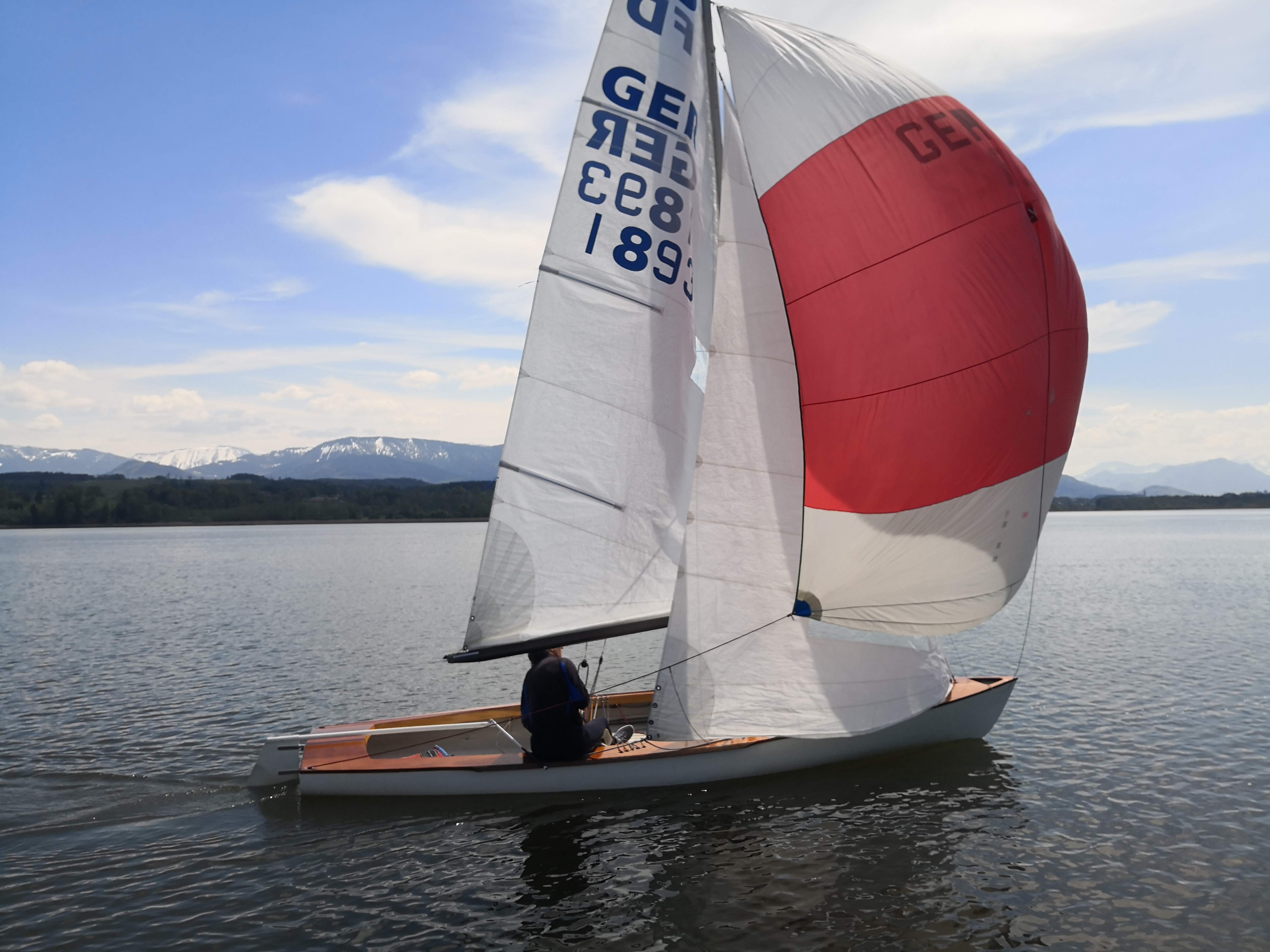 Ansegeln am Simssee, vorne die Sieger Robert Siebert/Siegfried Milkreiter