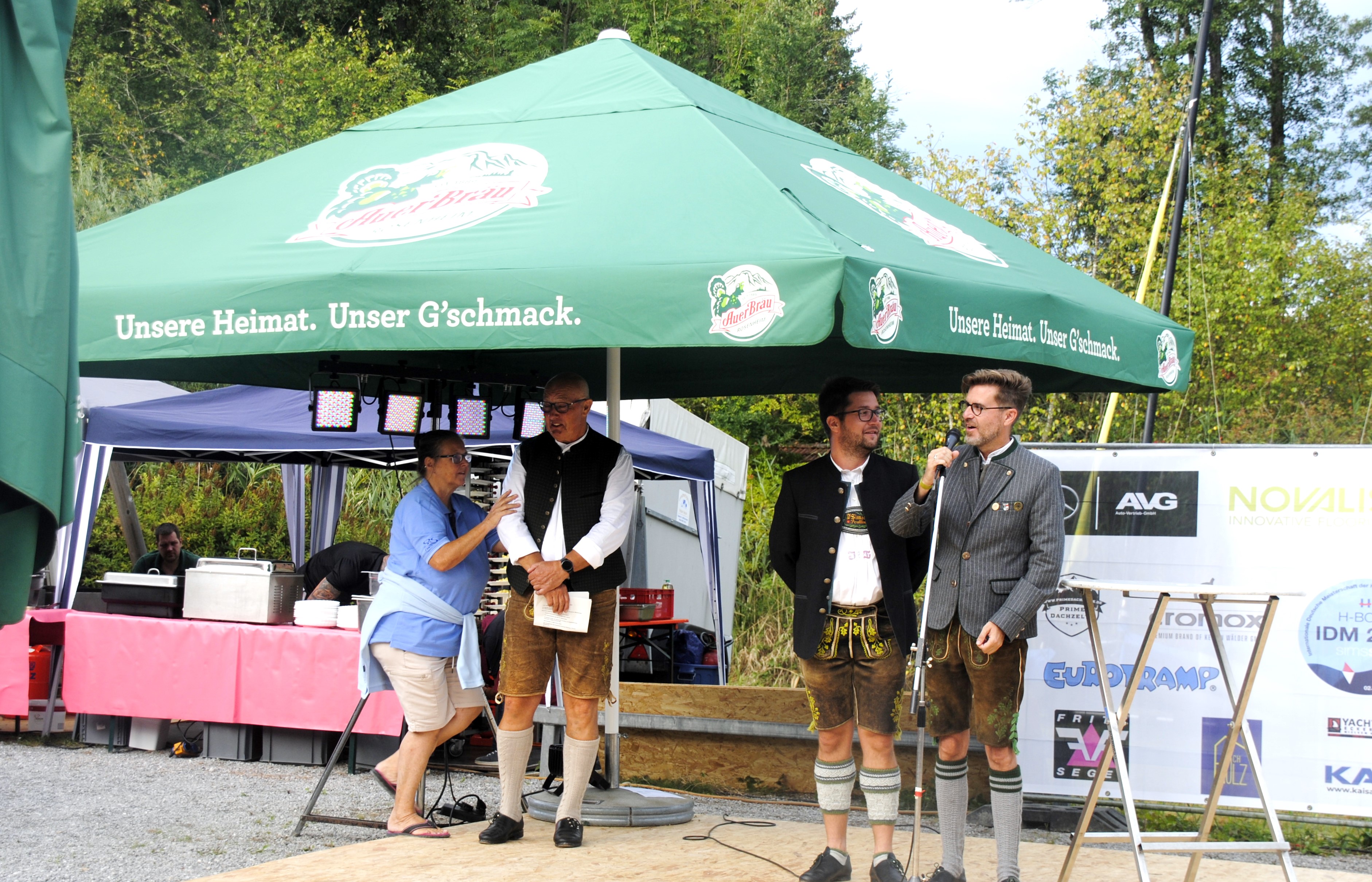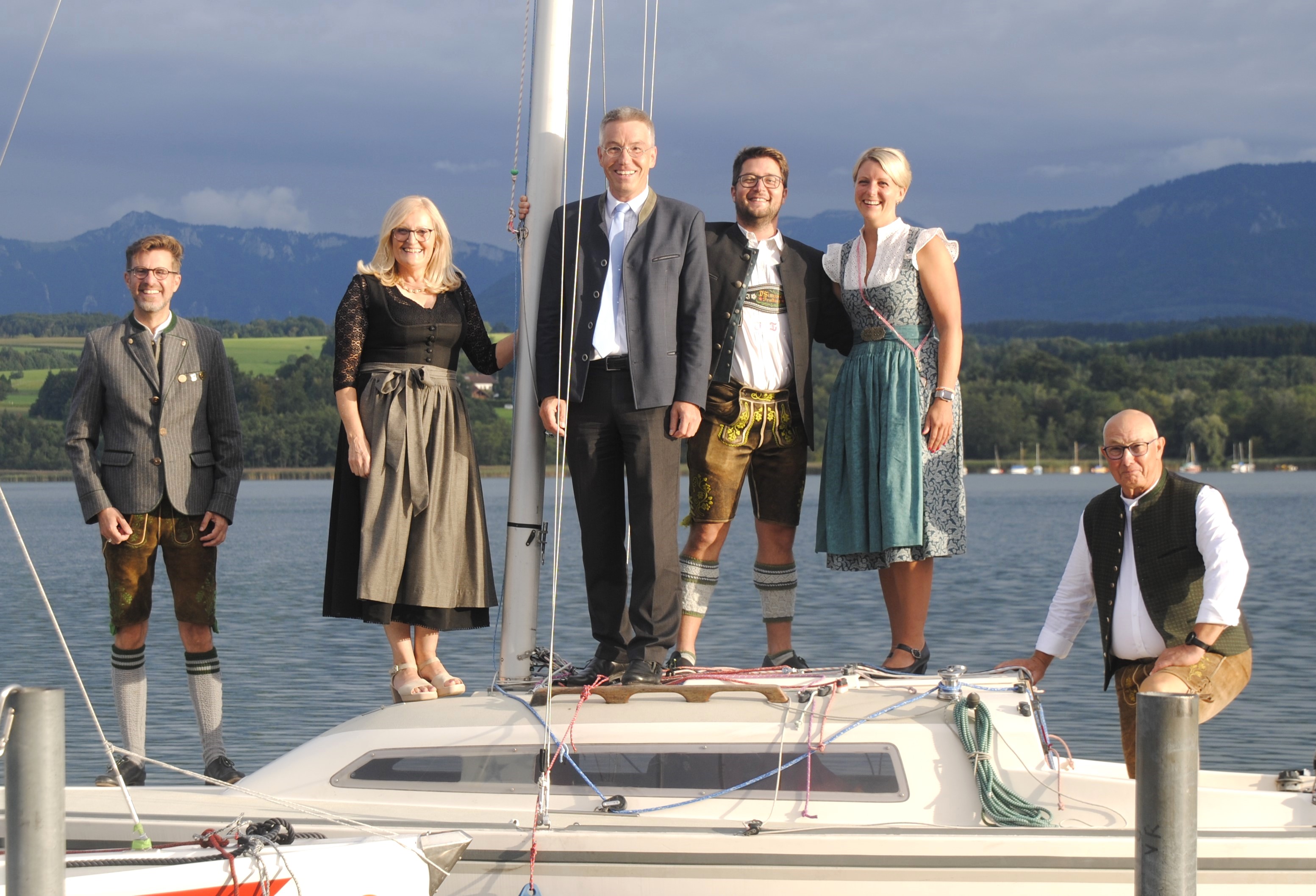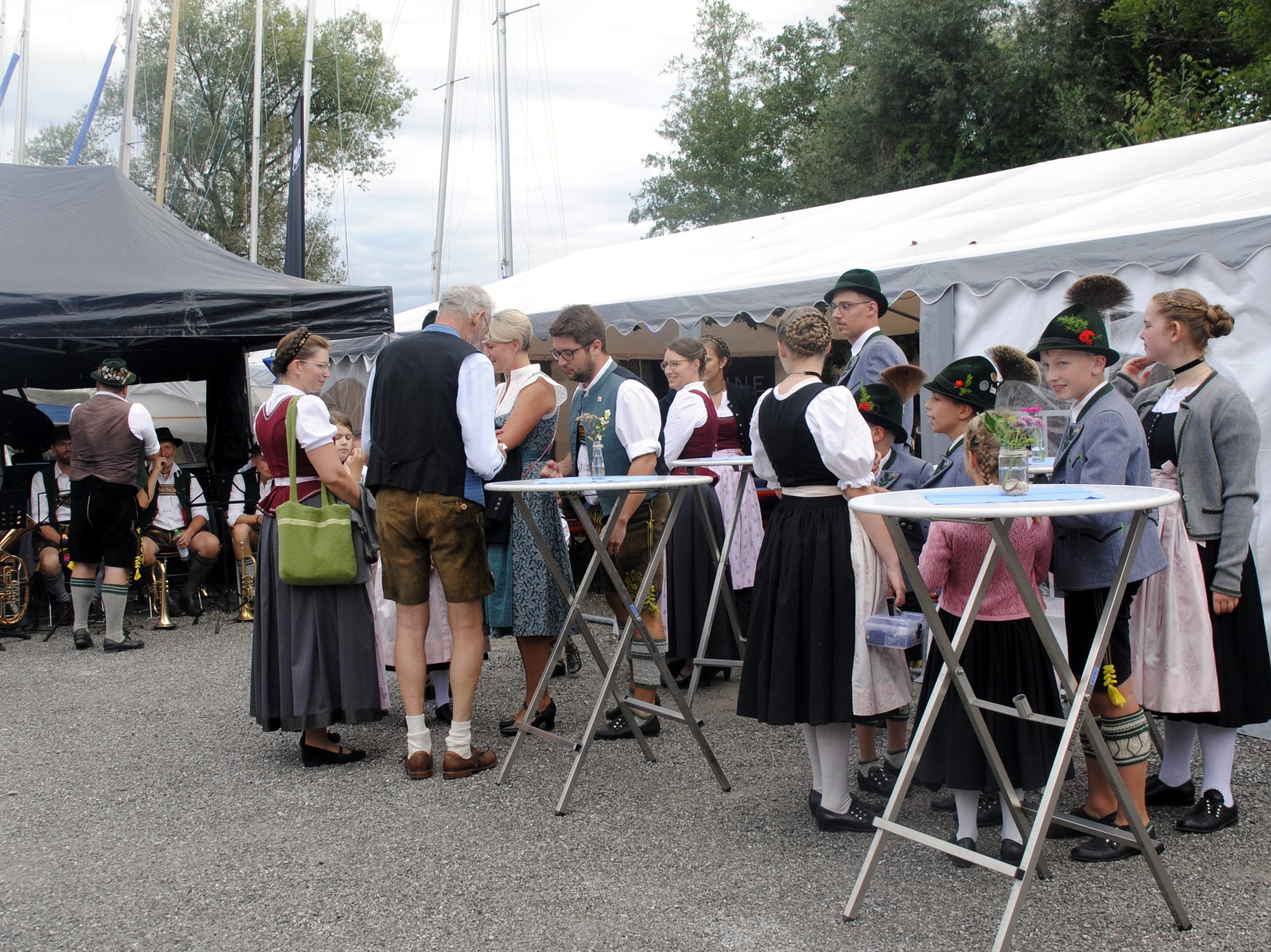 Simssee (ni) Viel Prominenz kam zur Eröffnung der Internationalen Deutschen Segelmeisterschaft der H-Boote beim Segler- und Ruderclub Simssee. Der Club liegt am Nordufer des Simssees in der Gemeinde Prutting. Nachdem Erster Vorstand Hans Reile, die Teilnehmer, Gäste und Sponsoren begrüßt hatte, ergriff Rosenheims Landrat Otto Lederer, der Schirmherr der Veranstaltung, das Wort. „Ich habe die Schirmherrschaft gerne übernommen und freue mich sehr, dass der tatkräftige SR Simssee dieses seglerisches Großereignis ausrichtet“, erklärte er. Auch Stephanskirchens Bürgermeister Karl Mair und Pruttings Bürgermeister Johann Thusbaß lobten das vorbildliche Engagement des SR Simssee. Der Vorstand der Deutschen H-Boot-Vereinigung, Christoph Zander, betonte, dass nicht nur Großclubs, sondern auch oft kleinere Vereine vorbildliche Arbeit leisten. Von der sportlichen Seite war Sybille Merk, Vizepräsidentin des Deutschen Seglerverbandes, angereist. „Ich freue mich sehr, dass ich zum Simssee gekommen bin, an dem ich schon im Jüngstenboot Optimist Regatten gesegelt bin“, meinte die erfolgreiche Seglerin, die 1996 bei den olympischen Spielen teilgenommen hat. Vom Bayerischen Seglerverband kam Chiemgaus Seenvertreter Karl-Heinz Zipfer und freute sich über das Engagement des SR Simssee. Auch Thomas Sandbichler, Vorstand vom Seebesitzerverband Simssee und Vertreter der Wasserwachten Pietzing und Baierbach waren gekommen. Nach dem offiziellen Teil saßen die Teilnehmer und Gäste bei einem „Bayerischen Abend“ mit Auftritt der Pruttinger Trachtenkinder und Goaßlschnalzer und Klängen der Stephanskirchener Blaskapelle im SRS-Clubhaus noch lange gemütlich zusammen.